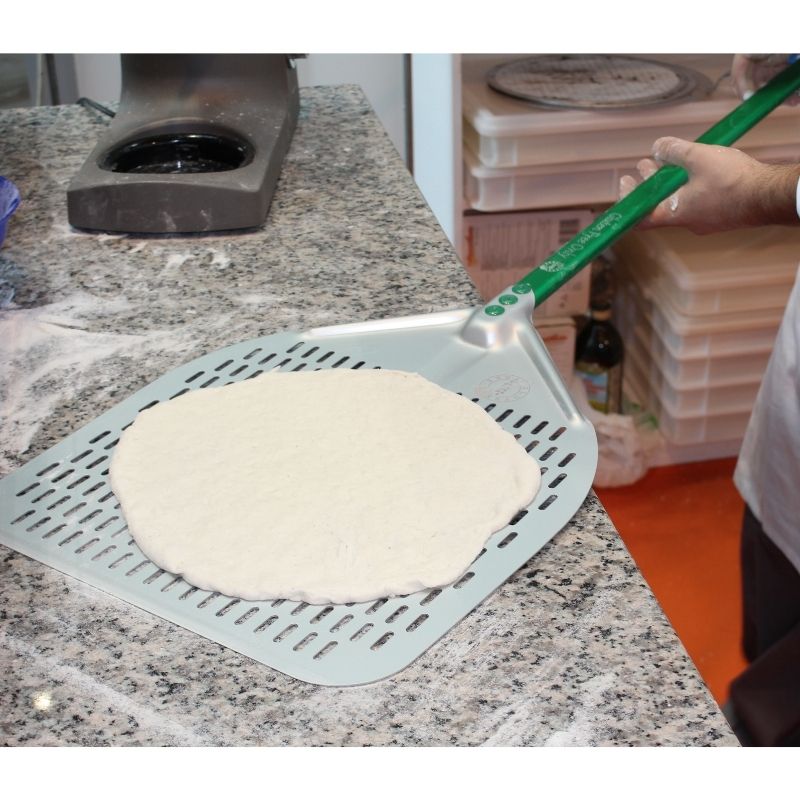 Elle se distingue par sa couleur verte qui permet au pizzaïolo de différencier au mieux ses ustensiles de travail,