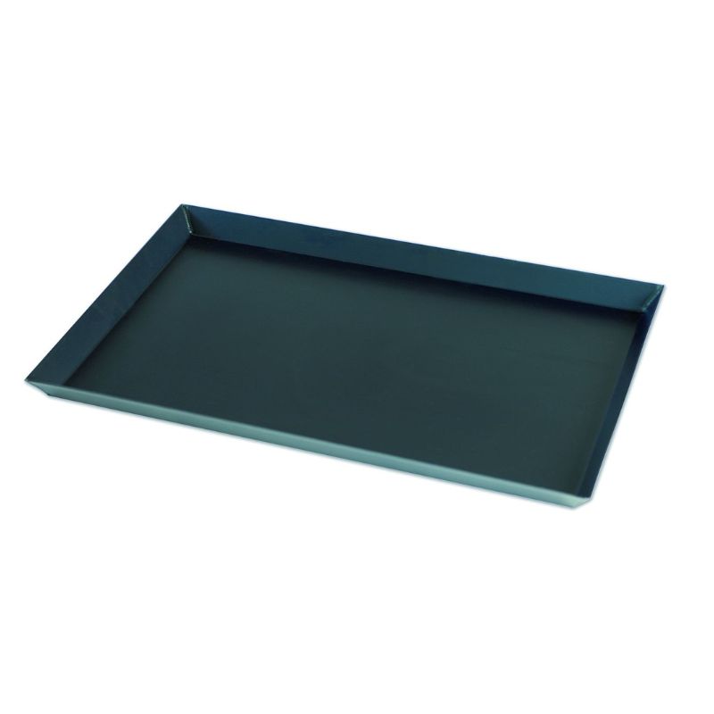 Plat rectangulaire en tôle bleu 40 x 60 bord évasé 3 cm. Le plat offre une cuisson uniforme dans les fours où le plateau se réchauffe immédiatement, ce qui permet une meilleure protection de la base de la pizza. La cuisson dans un plat se différencie par une cuisson plus lente comparée à celle directement sur la brique, ce qui convient mieux aux pizzas plus riches en pâte.
