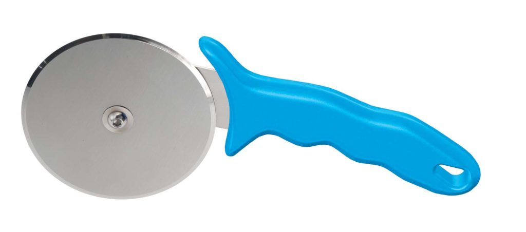 Rotella pizza lama inox temprato smontabile e riaffilabile, affilata su entrambi i lati, manico plastica, certificato alimentare.
