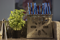 Porta accessori da banco 9 posti, in alluminio anodizzato neutro