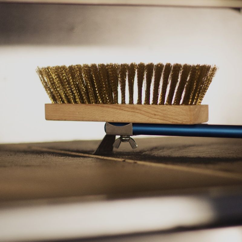 Le setole di ottone consentono una pulizia veloce e più efficiente della pietra refrattaria da residui alimentari, farina o cenere.