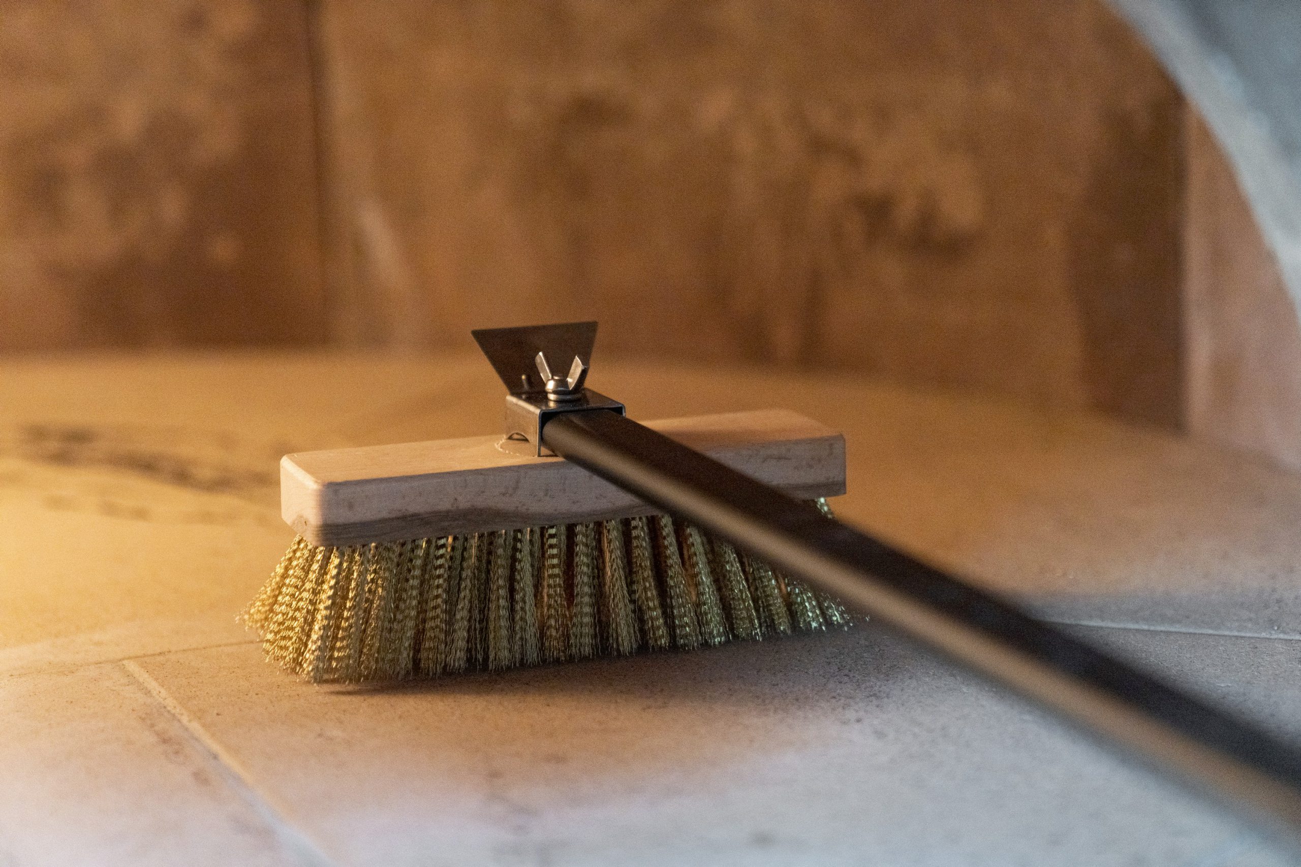 Le setole di ottone consentono una pulizia veloce e più efficiente della pietra refrattaria da residui alimentari, farina o cenere.